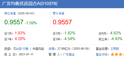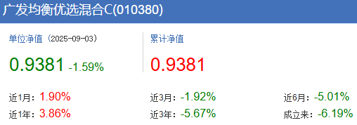 广发均衡优选混合A成立于2021年1月11日,截至今年9月3日其累计收益率依然还亏损着4.43%,而该基金的C份额成立于2021年1月11日,同样累计亏损6.19%。