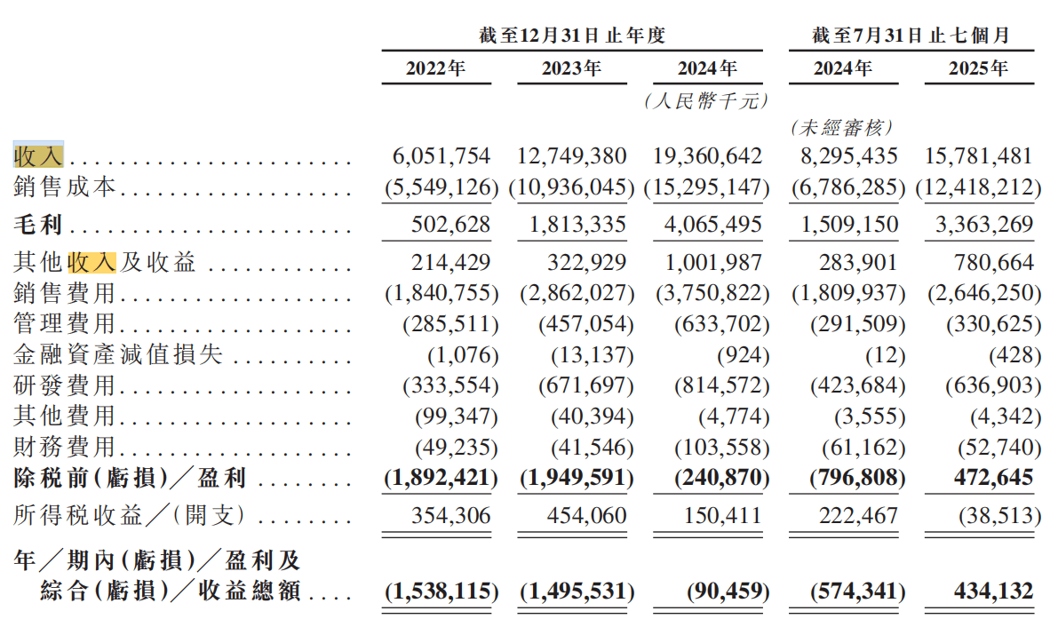 招股书显示,2022年至2024年,岚图汽车分别实现营业收入60.52亿元、127.49亿元和193.61亿元。同期该公司分别录得净亏损15.38亿元、14.96亿元和0.91亿元,亏损幅度逐年收窄。
