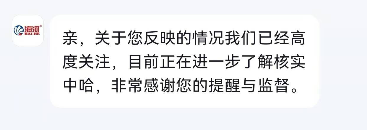 4月7日,海河牛奶旗舰店客服向记者表示:“关于您反映的情况我们已经高度关注,目前正在进一步了解核实中。”记者注意到,海河牛奶旗舰店抖音直播间共有粉丝14.3万,截至发稿,该账号部分视频已被删除。(完)